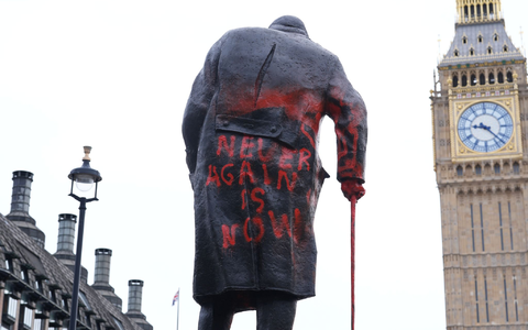 Berühmte Statue von Winston Churchill in London beschmiert