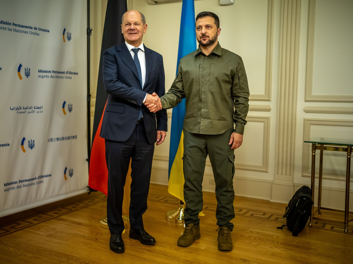 Bundeskanzler Olaf Scholz (SPD) hat dem ukrainischen Präsidenten Wolodymyr Selenskyj bei einem Treffen in New York erneut anhaltende Unterstützung im Abwehrkampf gegen Russland zugesagt. Regierungssprecher Steffen Hebestreit teilte nach dem 30-minütigen Gespräch mit, Selenskyj habe sich für die Militärhilfe bedankt, insbesondere für die Artillerie und Luftverteidigung.