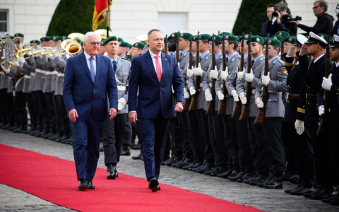 • Polens PrĂ€sident Nawrocki erhielt die volle protokollarische Aufmerksamkeit - Foto: Bernd von Jutrczenka/dpa