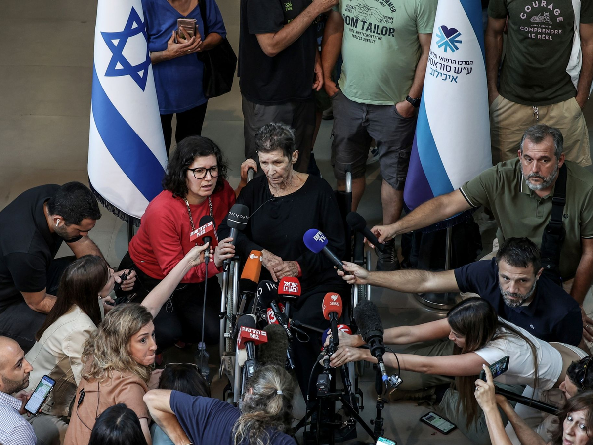 Yocheved Lifschitz wurde dabei gemeinsam mit ihrem Ehemann aus der Ortschaft Nir Oz entführt. Was mit ihrem Mann ist, weiß die Familie nicht, wie eine Tochter Journalisten sagte. Er sei verletzt.