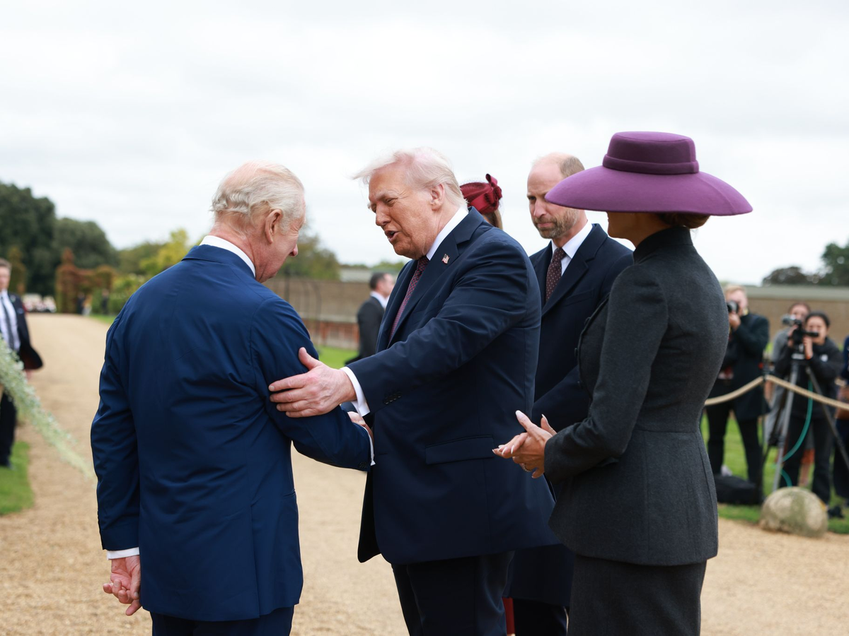 17.09.2025 - 17:30:28 | dpa.deDonald Trump schüttelte dem König die Hand, klopfte dem Thronfolger auf die Schulter und stieg dann in die verzierte Kutsche. Ungeachtet der Proteste in London ist der US-Präsident auf Schloss Windsor zum Staatsbesuch im Vereinigten Königreich empfangen worden. An der Seite von König Charles III. wurde der mächtigste Mann der Welt durch den Schlossgarten gefahren - musikalisch untermalt von den Nationalhymnen beider Staaten.
