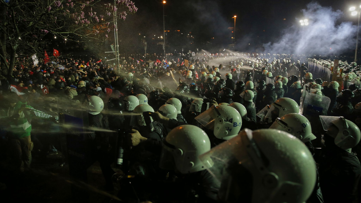 24.03.2025 - 04:32:19 | dpa.deNach der Inhaftierung und vorübergehenden Absetzung des Istanbuler Bürgermeisters Ekrem Imamoglu weiten sich die Proteste in der Türkei aus. In mehreren Städten des Landes zogen Hunderttausende durch die Straßen, unter anderem - trotz Demonstrationsverbots - auch in Istanbul und Ankara. Die Polizei setzte Berichten zufolge am späten Abend Wasserwerfer und Tränengas gegen die Demonstrierenden ein. Imamoglus Partei CHP wählte ihn kurz zuvor trotz Inhaftierung zum Präsidentschaftskandidaten.