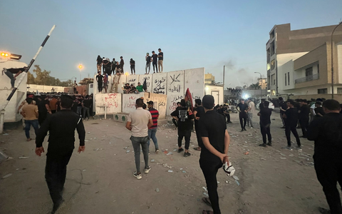 Bilder in sozialen Netzwerken zeigten an dem Gebäude in Bagdad in der Nacht Feuer und Rauchwolken. Einige feierten auf der Straße und schwenkten irakische Flaggen. Unter den Protestlern waren viele Anhänger des einflussreichen schiitischen Geistlichen Muktada al-Sadr. Bis zum Morgen zogen die Gruppen teils wieder ab.