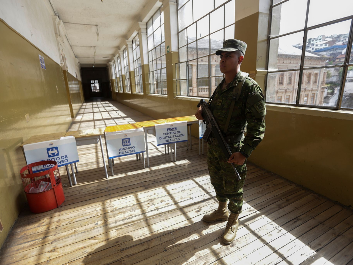 Viele Kandidaten trugen bei der Stimmabgabe kugelsichere Westen. Der Journalist Christian Zurita, der an der Stelle des vor eineinhalb Wochen ermordeten Villavicencio antrat, kam sogar mit Stahlhelm und umringt von Soldaten in das Wahllokal.