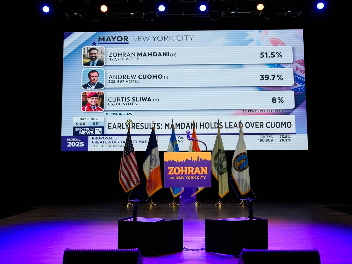 Mit knapp zehn Prozentpunkten lag Mamdani nach vorläufigen Hochrechnungen der Wahlleitung weit vor dem gemäßigten Demokraten Andrew Cuomo, der nach seiner Niederlage in der Vorwahl als unabhängiger Kandidat angetreten war. Der Republikaner Curtis Sliwa hatte von Beginn an kaum Chancen.