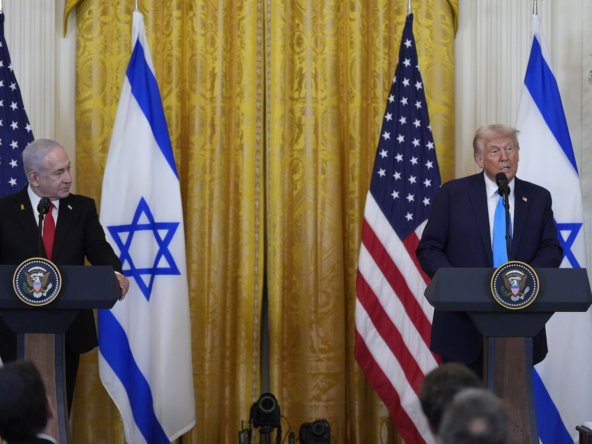 Unterstützung für seine Gaza-Pläne bekommt Trump vom israelischen Ministerpräsidenten. «Er sieht eine andere Zukunft für dieses Stück Land, das der Ursprung von so viel Terrorismus war», sagte Netanjahu bei dem gemeinsamen Auftritt mit Trump. «Das ist etwas, das die Geschichte verändern könnte.» Netanjahu schwärmte generell über Trumps Abkehr von «konventionellen Denkweisen» und dessen «frische Ideen».