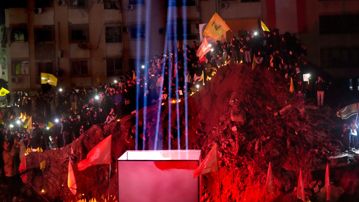 Südlich von Beirut versammelten sich am Abend zahlreiche Menschen an dem Ort, an dem der ehemalige Hisbollah-Anführer Hassan Nasrallah Ende September durch einen israelischen Luftangriff auf das Hauptquartier der Schiitenmiliz getötet worden war. Auf Bildern war zu sehen, wie Menschen sich inmitten einer Art Brachfläche umgeben von höheren Häusern zusammenfanden. Kerzen und die gelben Flaggen der Hisbollah steckten in den Trümmern. Aus der Mitte der Menschenmasse wurden gleißende Lichtstrahlen gen Himmel gerichtet. Die Veranstaltung am «heiligen Ort des Martyriums» stand unter dem Motto «Licht aus Licht». Der frühere Standort des Hauptquartiers der Hisbollah im Viertel Haret Hreik dürfte damit bereits zu einer Art Pilgerstätte für Anhänger der Hisbollah geworden sein.