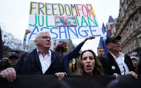 Vor dem Londoner Gerichtsgebäude Royal Courts of Justice forderten Demonstrantinnen und Demonstranten am Mittwoch erneut, Assange müsse freigelassen werden. Sie hielten ein Banner und Plakate mit Aufschriften wie «Free Assange» und «Journalism is not a crime» (übersetzt: «Journalismus ist kein Verbrechen»).