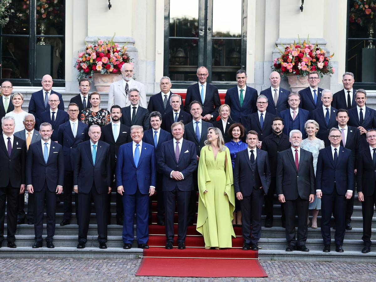 Der König und seine Frau MĂĄxima empfingen die Staats- und Regierungschefs zum Auftakt des Treffens zu einem Staatsbankett. Trump saĂ am Tisch neben dem König, Selenskyj neben der Königin. Einige der GĂ€ste wurden auch von ihren Partnerinnen oder Partnern begleitet, so reiste beispielsweise Brigitte Macron mit an.Â