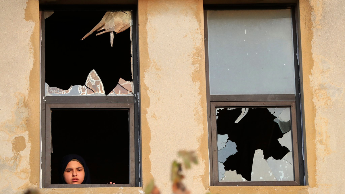 Ein libanesisches Mädchen blickt nach israelischem Beschuss auf ein Dorf im Südlibanon durch ein zerbrochenes Fenster. - Foto: Mohammed Zaatari/AP/dpa