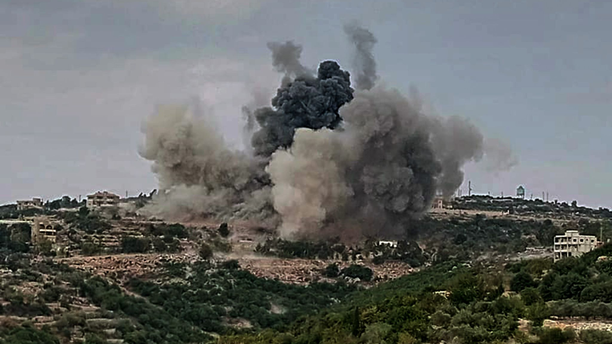 Rauch steigt auf nach einem israelischen Angriff mit Kampfhubschraubern auf ein Dorf im Südlibanon. - Foto: Marwan Naamani/dpa