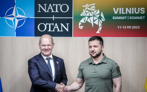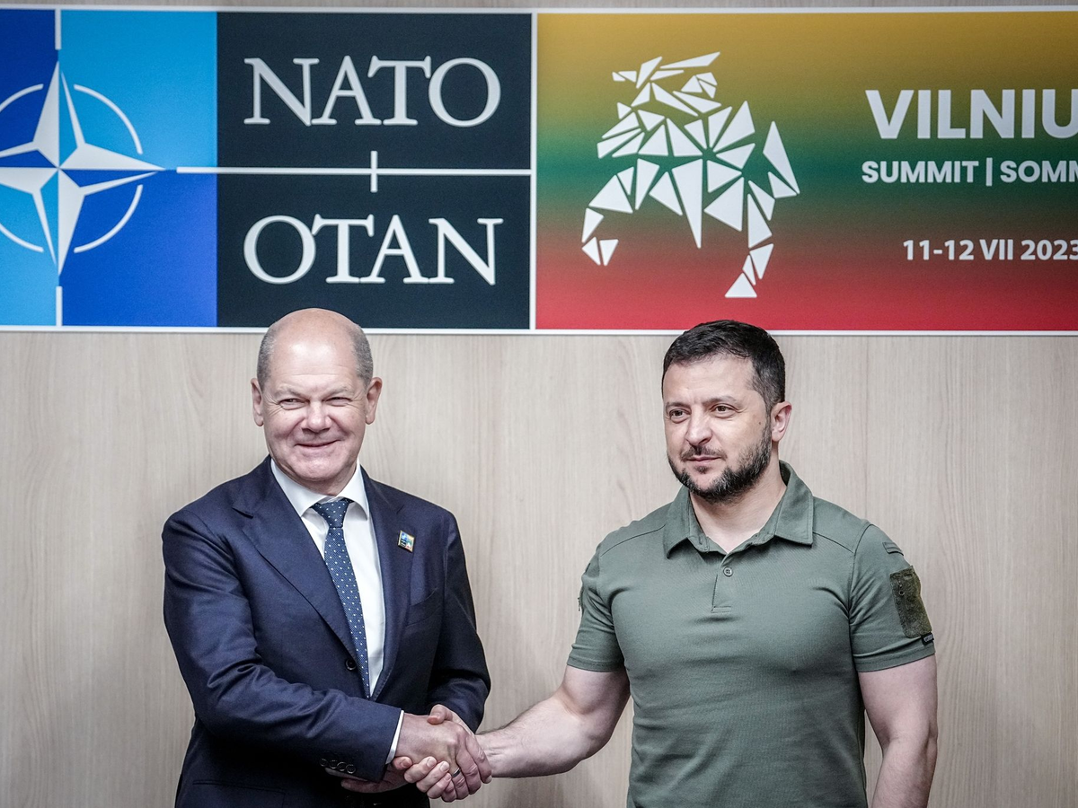 Bundeskanzler Olaf Scholz hatte der Ukraine am Dienstag zum Auftakt des Gipfels ein neues Waffenpaket mit einem Wert von fast 700 Millionen Euro zugesagt. Dazu gehören Panzer, Patriot-Flugabwehrgeräte und 20.000 Schuss Artilleriemunition. Deutschland hatte sich in den Verhandlungen über das Gipfeldokument allerdings gegen eine klare Nato-Beitrittsperspektive für die Ukraine mit einem Fahrplan gestemmt. Am Rande des Gipfels kam auch Scholz zu einem Zweiergespräch mit Selenskyj zusammen.