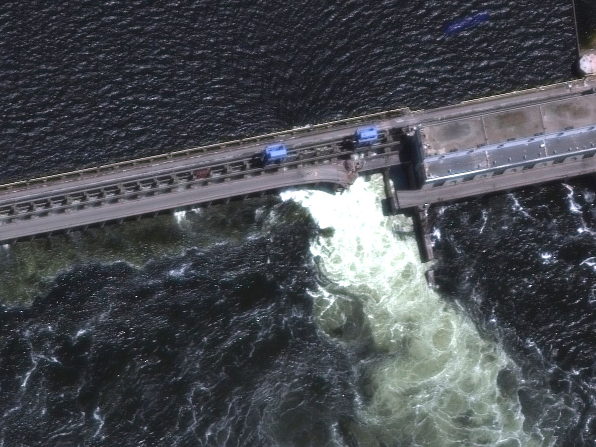 Der Kachowka-Stausee und der Fluss Dnipro bildeten seit dem vergangenen Herbst die Frontlinie im Gebiet Cherson. Das Südufer wird von russischen Truppen beherrscht, das nördliche Ufer mit der gleichnamigen Gebietshauptstadt Cherson nach der Rückeroberung wieder von den Ukrainern. Der ukrainische Ministerpräsident Denys Schmyhal sprach von Überschwemmungsgefahr für bis zu 80 Ortschaften. Entlang des Nordufers sahen die ukrainischen Behörden 16.000 Menschen in Gefahr. Militärgouverneur Olexander Prokudin berichtete von zunächst acht Ortschaften, die ganz oder teilweise unter Wasser stehen. Angaben über Tote oder Verletzte gab es zunächst nicht.