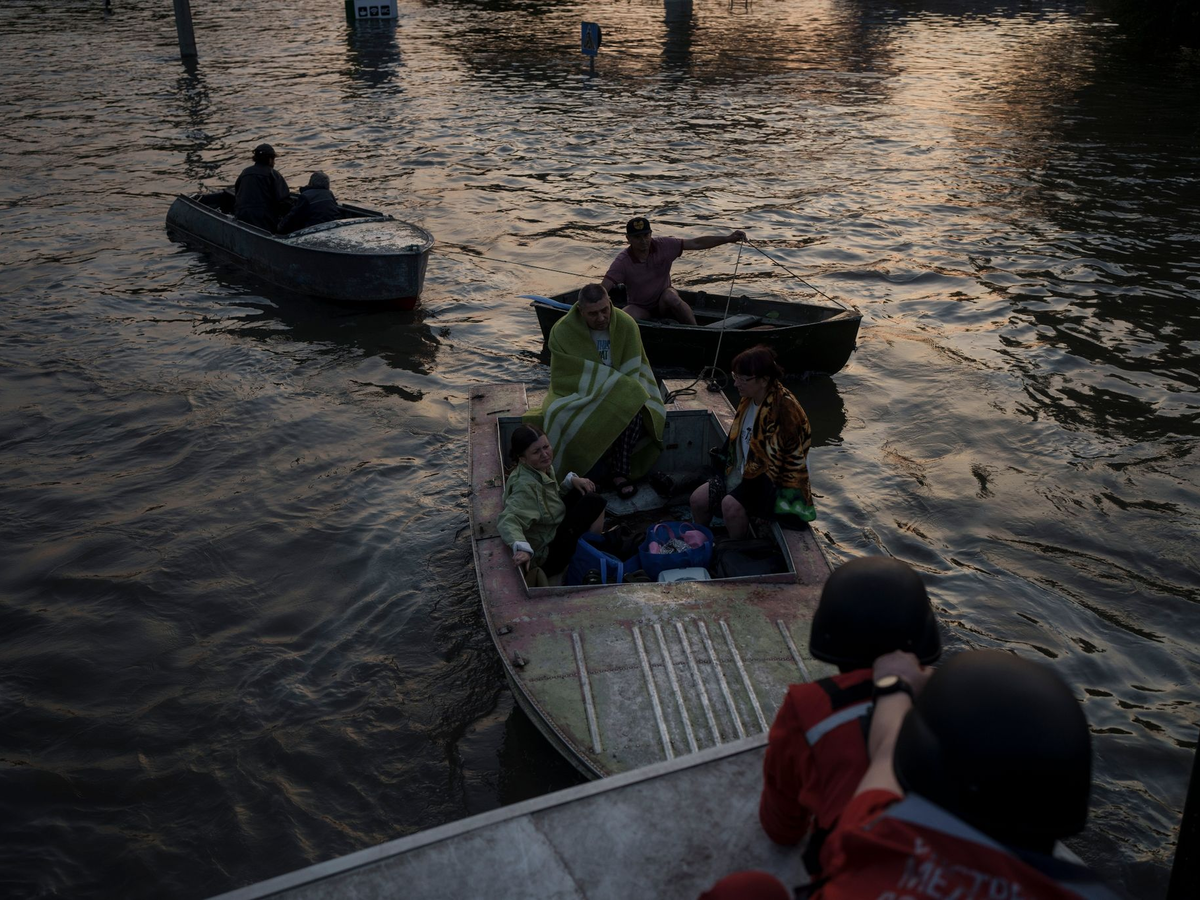 In der Stadt Cherson leben die Menschen seit Monaten unter russischem Artilleriefeuer. Luftaufnahmen zeigten, dass dort im Stadtteil Korabel von vielen eingeschossigen Häusern nur noch das Dach aus dem Wasser ragte. Zur Lage am flachen Südufer in russischer Hand gab es kaum Informationen. In Nowa Kachowka dicht an der Staumauer berichtete die russische Verwaltung von Überschwemmungen.