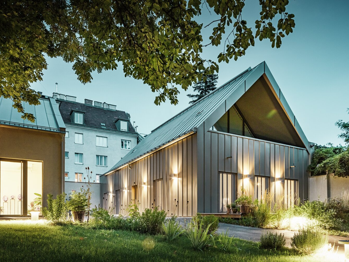 Das Studio Comploj vereint GlasblĂ€serei, Handwerk und moderne Architektur zu einem einzigartigen Bauwerk in Wien. Mit einer Fassade und einem Dach aus PREFALZ-Aluminium wurde das GebĂ€ude zu einem markanten Highlight in Wien. Die Architekt:innen von Berger+Parkkinen schufen ein dreiteiliges Ensemble, das GlasblĂ€serei, Verkaufsraum und Wohnbereich vereint. Die prĂ€zise AusfĂŒhrung der Metallarbeiten und die funktionalen Details sichern die Ästhetik wie auch die Langlebigkeit des Projekts.