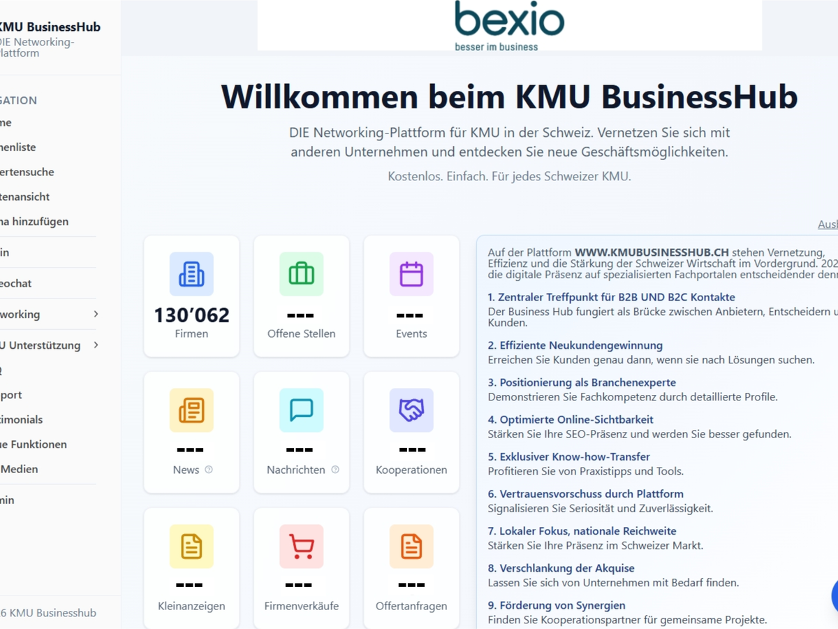 Der KMU Businesshub ist weit mehr als eine B2B-Kontaktbörse. Die Plattform integriert: