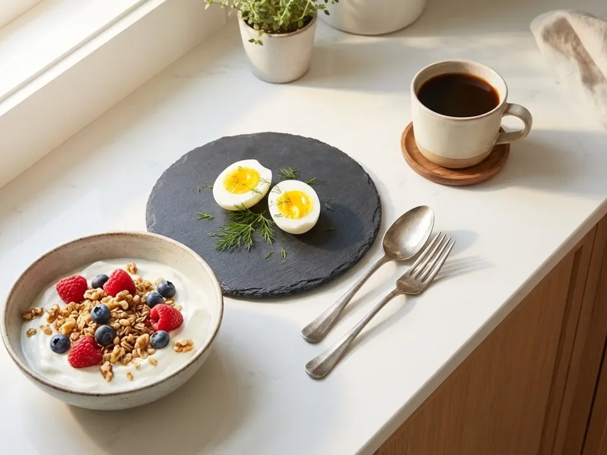 - Mindestens 30 Gramm Protein zum Frühstück (Quark, Eier oder pflanzliche Alternativen wie Linsenmehl)