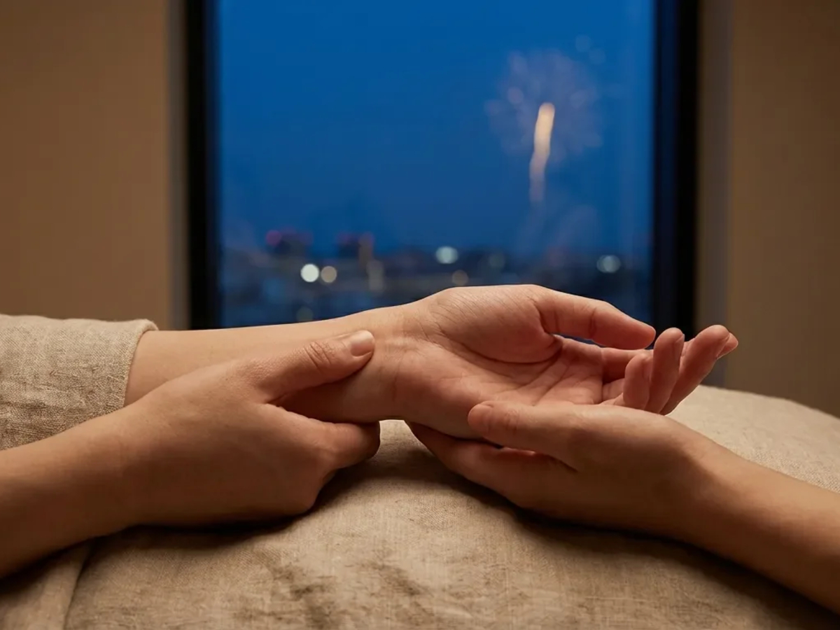Der Akupressurpunkt Herz 7 (Shenmen) wird als zentrales Mittel gegen Silvesterstress empfohlen. Er soll Nervosität lindern, den Schlaf fördern und auch Haustieren bei Feuerwerksangst helfen.