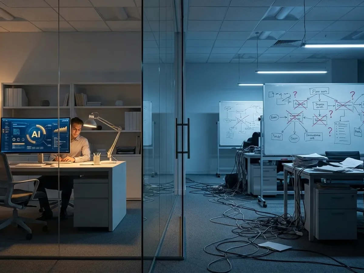 Der Fokus lag zu lange auf der Einzelproduktivität. Wenn ein Mitarbeiter schneller arbeitet, sein Team aber nicht, verpufft der Effekt. Ein Beispiel: Ein Marketingmanager generiert zehnmal mehr Entwürfe, doch die manuelle Rechtsprüfung erzeugt nur einen Stau. Der Flaschenhals verlangsamt den Gesamtprozess.