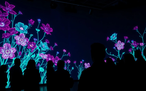 Ein Höhepunkt ist die Installation „Meta-Nature AI“ aus dem Jahr 2023. Künstliche Intelligenz erschafft hier eine virtuelle Welt aus Blumen und Blättern, die permanent auf die Anwesenheit der Gäste reagiert und sich neu formt – eine technologische Hommage an Monets Seerosen.