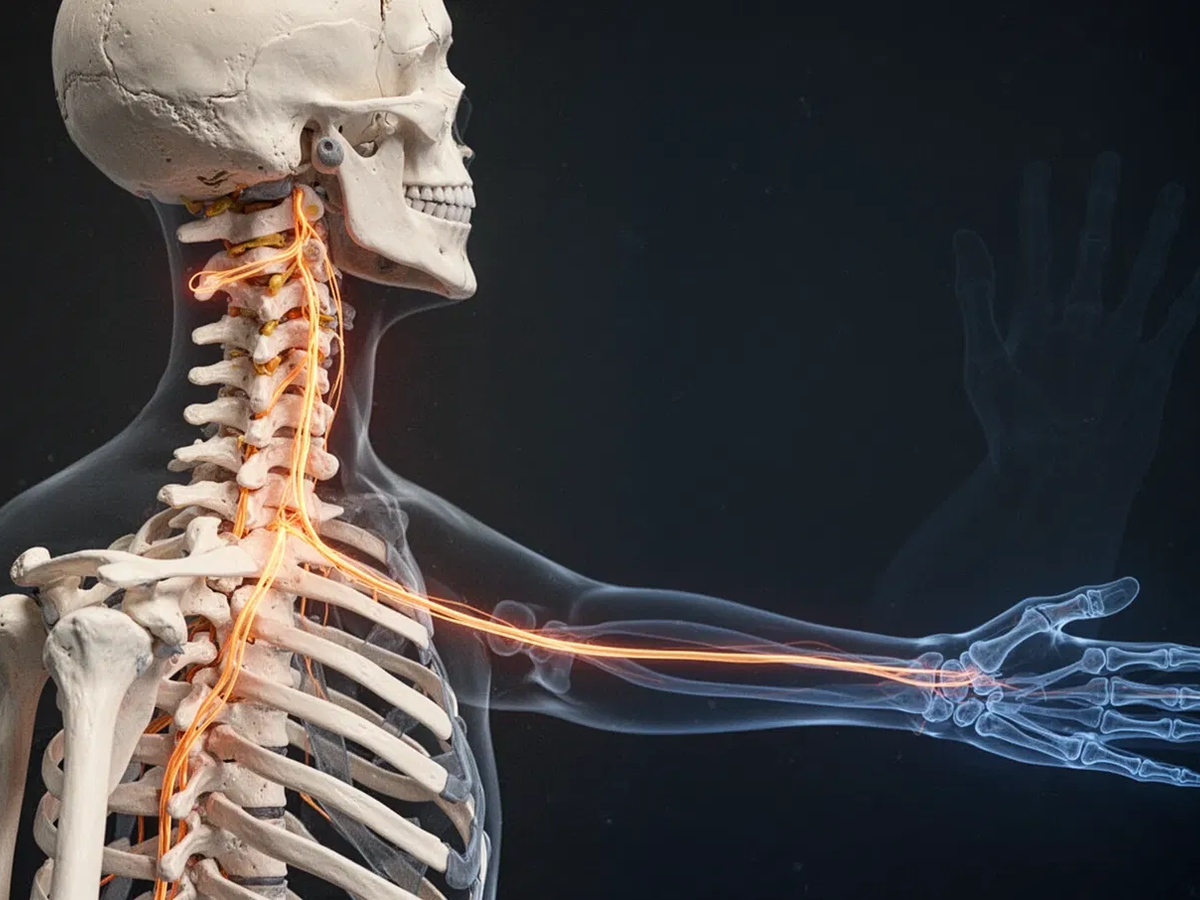 Die Schmerzen entstehen oft, wenn Nervenwurzeln an der Halswirbelsäule gereizt oder gedrückt werden. Begleitet werden sie häufig von Kribbeln, Taubheit oder sogar Kraftverlust im Arm. Diese Alarmsignale sollte immer ein Arzt abklären.