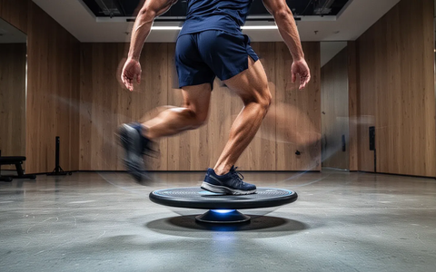 * Ausfallschritte auf dem Balance-Board: Die instabile Oberfläche intensiviert die klassische Übung und fordert Rumpf und Beine stark heraus.