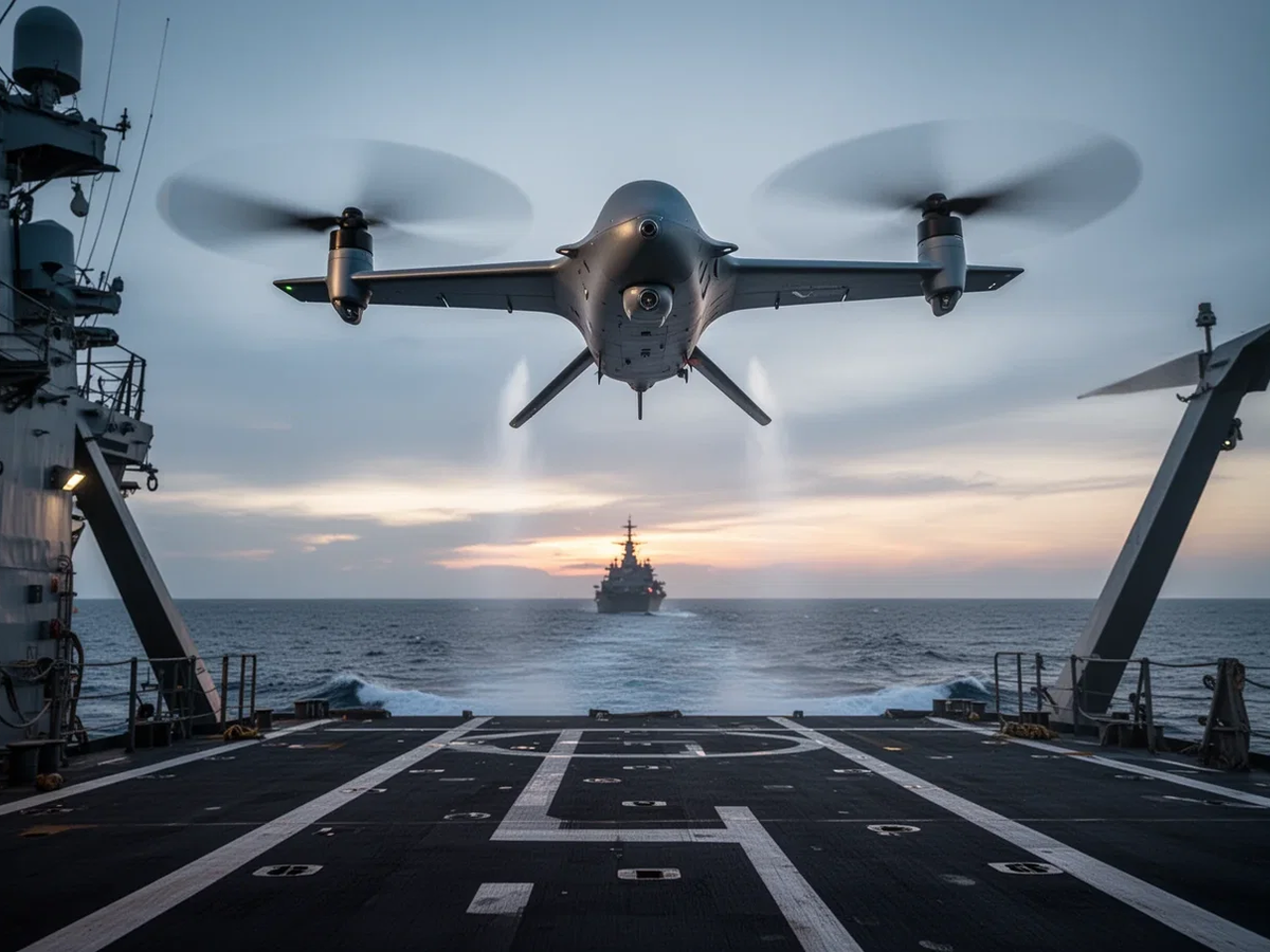 Die strategische Wende wurde heute deutlich: Die US-Marine vergab ein bis zu 800 Millionen Euro schweres Aufklärungsprogramm an Shield AI. Das Unternehmen liefert mit dem V-BAT eine Drohne, die über zwölf Stunden fliegt und senkrecht startet – ideal für Schiffe. Konkurrenz bekommt es von Rüstungsriesen wie Textron.