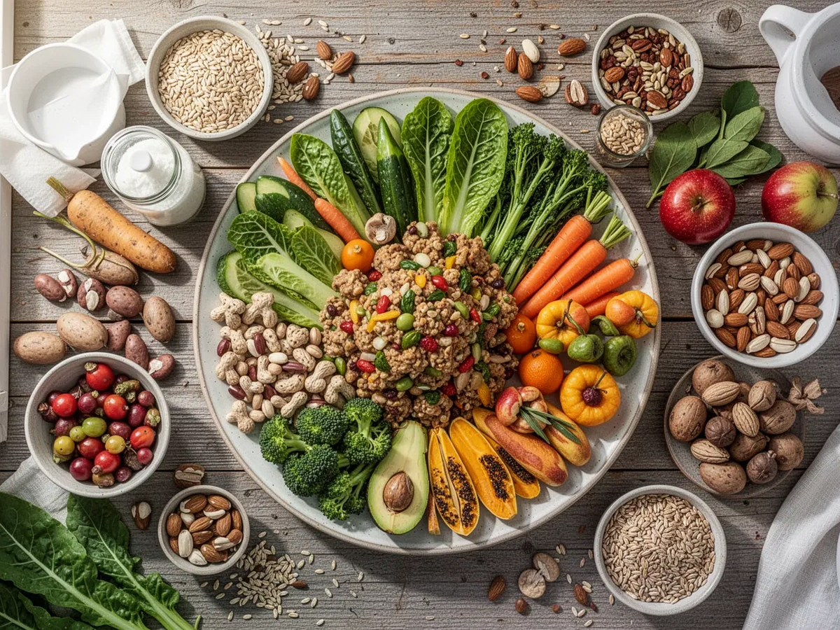 Experten empfehlen eine überwiegend pflanzliche Ernährung. Gemüse, Obst, Vollkornprodukte und Hülsenfrüchte sollten den Hauptanteil ausmachen. Milchprodukte, Fleisch, Fisch und Eier ergänzen den Speiseplan in Maßen.