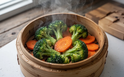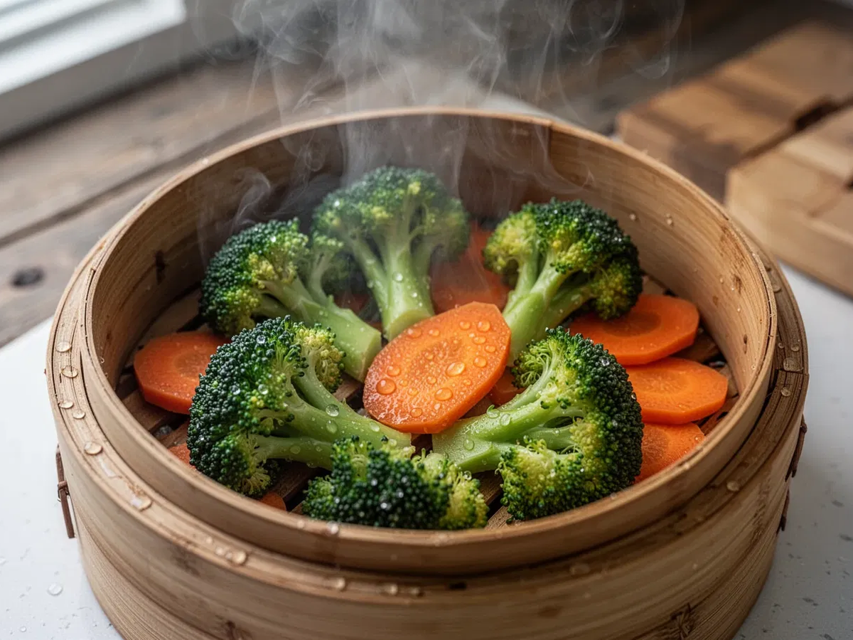 Dämpfen gilt als eine der gesündesten Zubereitungsarten. Gemüse, Fisch oder Geflügel garen im heißen Wasserdampf. Das verhindert das Auslaugen von Nährstoffen, bewahrt Farbe und Textur und macht zusätzliches Fett überflüssig.