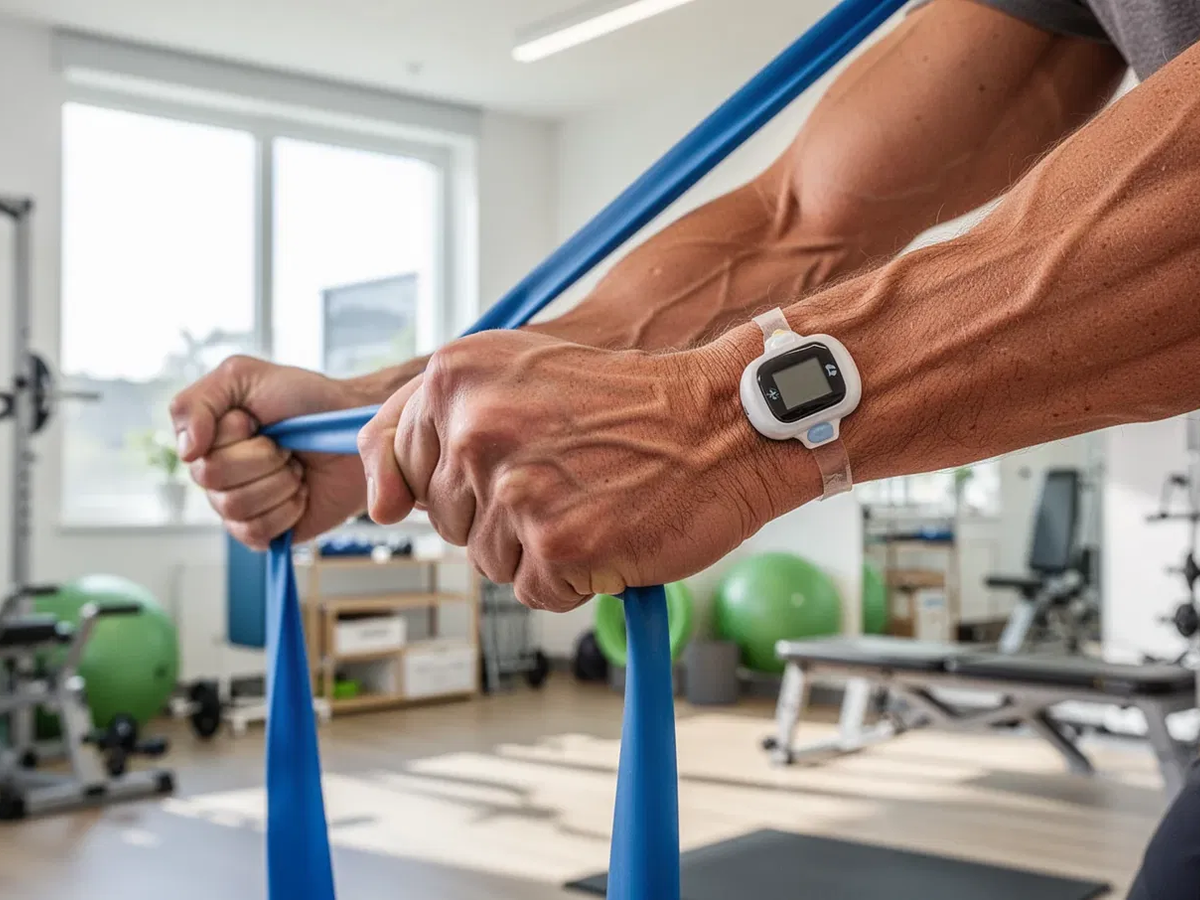 Ein Durchbruch fĂŒr körperlich eingeschrĂ€nkte Patienten ist das Blutflussrestriktionstraining (BFRT). Spezielle Manschetten an Armen oder Beinen begrenzen den venösen RĂŒckfluss. So entsteht ein intensiver Trainingsreiz schon mit 30 Prozent der Maximalkraft â statt der sonst nötigen 70 Prozent.