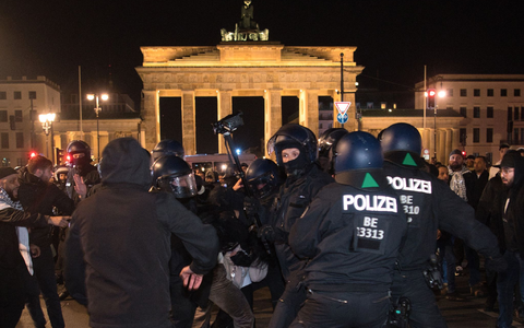 Das nahe gelegene Holocaustmahnmal musste von Polizisten geschützt werden. Nach Medienberichten hatten Demonstranten versucht, dorthin zu gelangen, wurden aber daran gehindert. Die Polizei bestätigte das am Mittwochmorgen zunächst nicht.