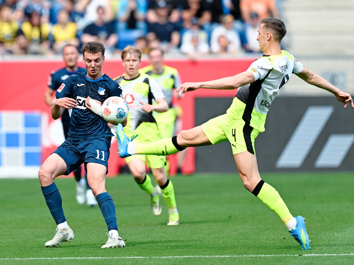 Von den mit viel Fan-Unterstützung angereisten Gästen kam wenig. Maximilian Beiers Versuch per Kopf war die einzige halbwegs brauchbare Möglichkeit in Hälfte eins, in der die Dortmunder lediglich zwei Torschüsse abgaben, die Hoffenheimer deren zehn.