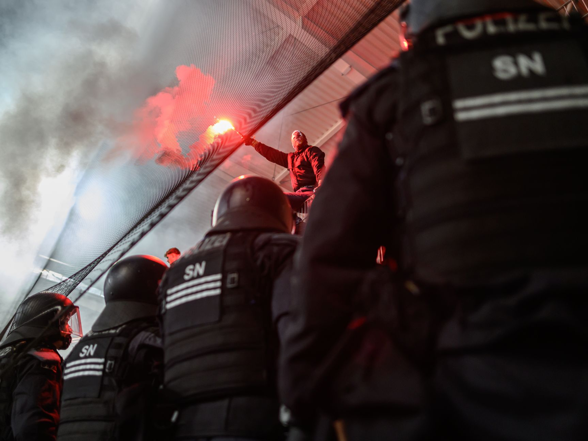 Die Polizei hat in der vergangenen Saison rund um Fußballspiele von der 1. bis zu 3. Liga 7.351 Straftaten gezählt. Das sei ein Anstieg von 12,2 Prozent im Vergleich zur Saison 2022/2023, heißt es im neuen Jahresbericht der Zentralen Informationsstelle Sporteinsätze (ZIS). Auch die Zahl der Verletzten nahm demnach zu.