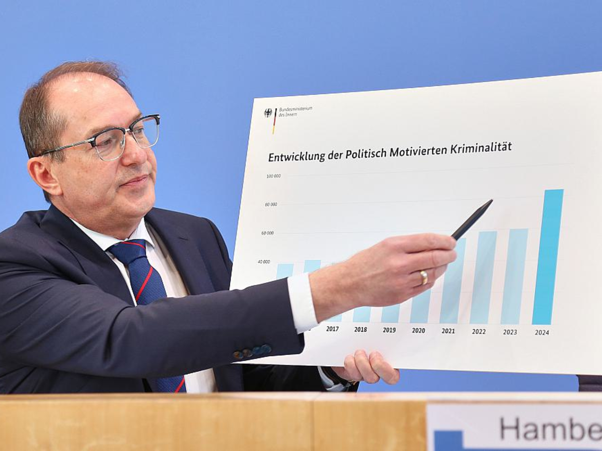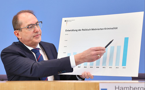 "Der noch nie dagewesene Anstieg der Fallzahlen politisch motivierter Straftaten ist eine bedenkliche Entwicklung, die wir mit aller Konsequenz und Entschlossenheit bekĂ€mpfen", sagte Bundesinnenminister Alexander Dobrindt (CSU). "Insbesondere die hohe Zahl antisemitischer Straftaten ist nicht hinnehmbar." Mit 42.788 Delikten wurden gut die HĂ€lfte aller PMK-Straftaten 2024 im PhĂ€nomenbereich PMK rechts registriert, was einem Anstieg von knapp 48 Prozent entspricht. Auch die Gewaltstraftaten sind um gut 17 Prozent auf 1.488 Delikte gestiegen. 2024 wurden 6.236 antisemitische Straftaten registriert, was einem Anstieg von knapp 21 Prozent im Vergleich zum Vorjahr 2023 (5.164 Delikte) entspricht und auch nach dem starken Anstieg im Jahr 2023 ein weiterer neuer Höchststand seit Beginn der Erfassung ist. 48 Prozent der Straftaten werden dem PhĂ€nomenbereich PMK -rechts- zugeordnet, 31 Prozent dem PhĂ€nomenbereich PMK auslĂ€ndische Ideologie. Im PhĂ€nomenbereich PMK auslĂ€ndische Ideologie ist im Vergleich zum Vorjahr fĂŒr das Jahr 2024 ein deutlicher Anstieg der Fallzahlen um mehr als 42 Prozent zu verzeichnen (2024: 7.343, 2023: 5.170 Delikte). Die erfassten Gewaltdelikte haben sich von 491 in 2023 auf 975 nahezu verdoppelt (+98,57 Prozent), 681 der Gewaltdelikte wurden im Zusammenhang mit dem Nahost-Konflikt begangen. Die Fallzahlen der PMK links stiegen deutlich um ĂŒber 28 Prozent auf 9.971 Delikte (2023: 7.777), der Anteil der Gewaltdelikte nahm indes auf 762 Delikte weiter ab (2023: 916 Delikte, ein Minus von knapp 17 Prozent). Der PhĂ€nomenbereich PMK sonstige Zuordnung hat sich um mehr als 33 Prozent auf 22.193 Delikte erhöht, wobei der Höchststand aus dem Jahr 2022 zu der Zeit massiver Coronaproteste mit ĂŒber 24.000 Delikten nicht erreicht wurde. Im PhĂ€nomenbereich PMK religiöse Ideologie stiegen die Fallzahlen um knapp 29 Prozent von 1.458 in 2023 auf 1.877 in 2024. Die Gewaltdelikte befinden sich auf gleichbleibendem Niveau (2024: 87, 2023: 90). Im Oberthemenfeld "Innen- und Sicherheitspolitik" wurden innerhalb des Unterthemenfelds "Wahlen" insgesamt 11.788 Delikte erfasst, was im Vergleich zum Vorjahr eine deutliche Zunahme darstellt, im Vergleich zu anderen Jahren mit vielen Wahlen - wie zum Beispiel 2021 - wurden jedoch Ă€hnlich viele Straftaten erfasst. Die Zahl der Straftaten mit Nennung des Oberthemenfelds "Konfrontation/Politische Einstellung" ist 2024 im Vergleich zum Vorjahr um knapp 54 Prozent gestiegen (2024: 39.761, 2023: 25.867). Bei HasskriminalitĂ€t handelt es sich um Straftaten, die durch gruppenbezogene Vorurteile motiviert sind. Die Fallzahlen nehmen weiterhin deutlich zu und steigen phĂ€nomenĂŒbergreifend um 28 Prozent im Vergleich zum Vorjahr (2024: 21.773, 2023: 17.007). Ein knappes Drittel der registrierten Straftaten der HasskriminalitĂ€t wurden mittels Tatmittel "Internet" begangenen. Die Zahl der politisch motivierten Tötungsdelikte ist leicht rĂŒcklĂ€ufig. 2023 wurden noch drei vollendete und 17 versuchte Tötungsdelikte registriert, wĂ€hrend 2024 neben drei vollendeten Tötungsdelikten elf Versuche erfasst wurden.