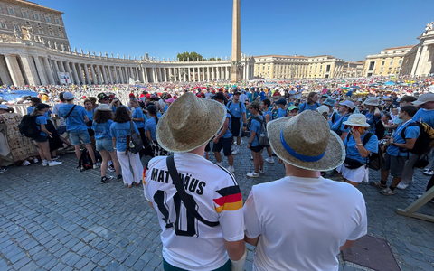 Ein großes Fest auf dem Petersplatz im Hochsommer: Bei 37 Grad Hitze bemüht sich Franziskus um den katholischen Nachwuchs. Die meisten davon kommen aus Deutschland.