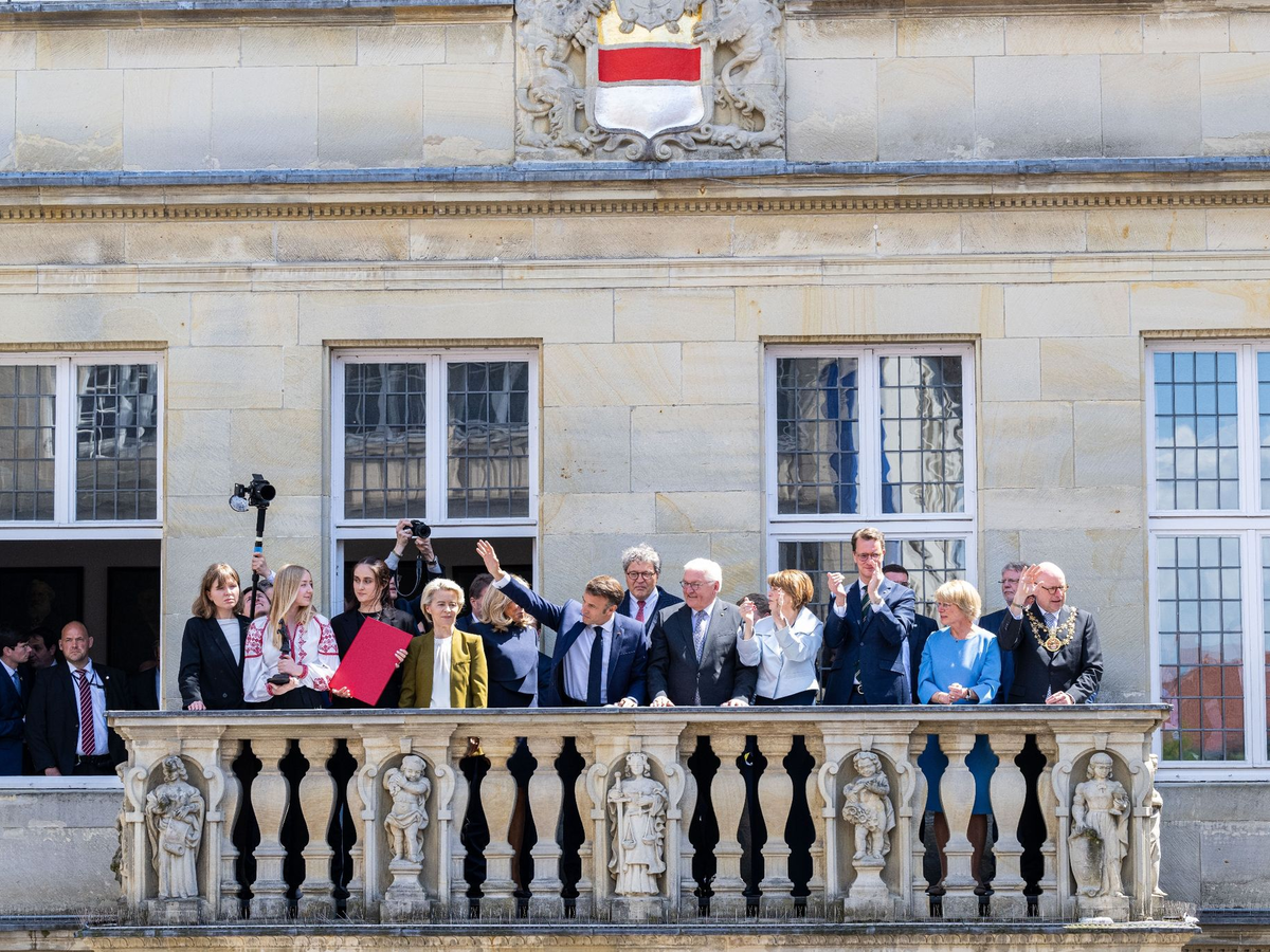 Vor dem deutsch-französischen Ministerrat in Meseberg schloss Macron seinen offiziellen Staatsbesuch in Münster ab. Dort wurde er mit dem Internationalen Preis des Westfälischen Friedens gewürdigt und rief in seiner Dankesrede zu mehr Optimismus und Tatendrang in Europa auf. «Als Europäer optimistisch sein heißt, sicher zu sein, dass Europa die richtige Antwort ist.» Dies beziehe sich auf die großen aktuellen Herausforderungen wie den Krieg in der Ukraine, die Klimakrise sowie die Bedrohung der Demokratie. «Wir müssen eine neue Etappe von Europa starten», sagte Macron. Wir sind in Europa zu zerstritten, zu langsam und zu schüchtern, das ist die Realität.»