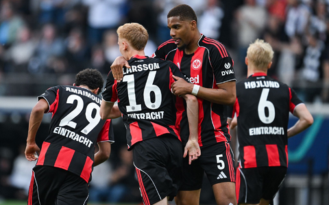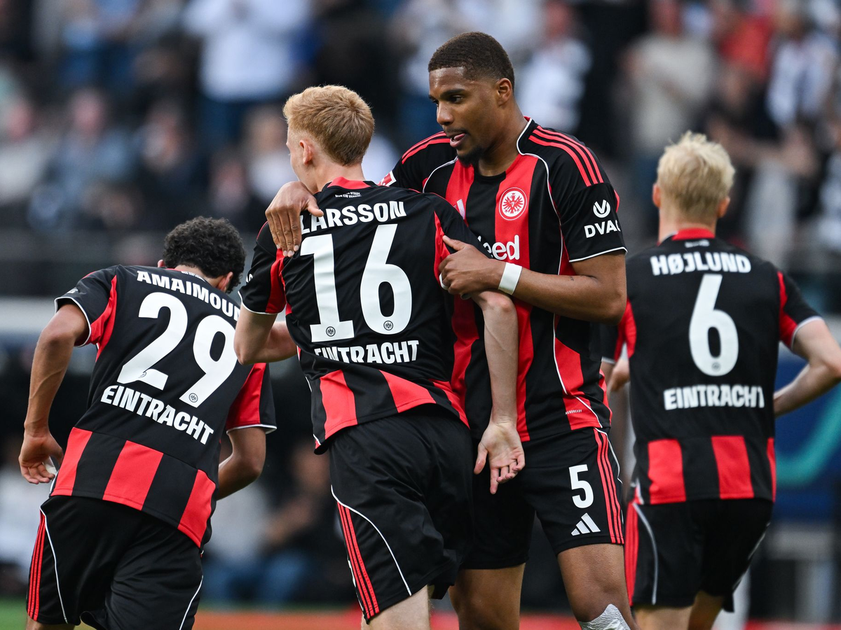 Die Antwort der Hessen, die auf die verletzten Kaua Santos, Rasmus Kristensen, Jean-Matteo Bahoya und Nnamdi Collins verzichten mussten, ließ nicht lange auf sich warten. Einen gelungenen Angriff über mehrere Stationen schloss Larsson per Kopf ab.