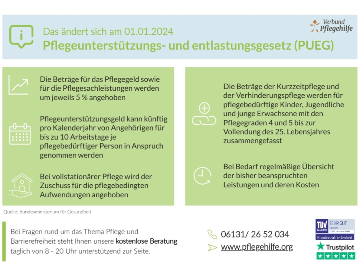 Bei weiteren Fragen rund um das Thema Pflege steht Ihnen unsere unverbindliche und kostenlose Pflegeberatung unter der Telefonnummer 06131/2652034 täglich von 8-20 Uhr unterstützend zur Seite.