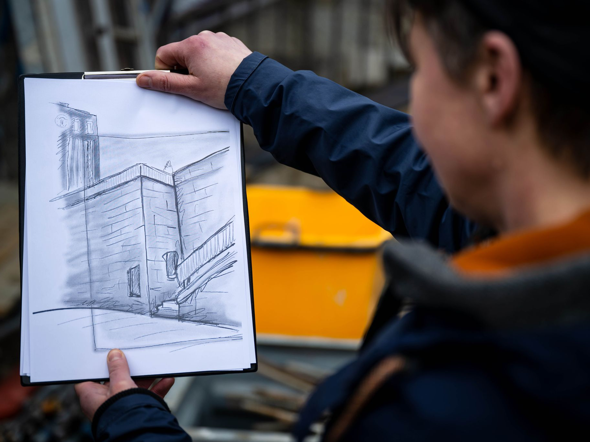 Das Mahnmal nach einem Entwurf von Evin Oettingshausen steht an der Weser - also dort, wo Schiffe damals die geraubten Möbel und Gegenstände aus den besetzten Ländern in Westeuropa nach Bremen brachten. Ein Fenster gewährt einen Blick in einen sechs Meter hohen Schacht und lässt nur erahnen, was sich in der Tiefe verbirgt. «Der Schacht soll die bis heute andauernden Geschichtslücken signalisieren», erklärte Evin Oettingshausen. Von der Weser-Promenade aus sind Blicke durch seitliche Fenster ins Innere des Mahnmals möglich, wo Reliefs von Möbeln zu sehen sind - «in Beton eingelassene Leerstellen».
