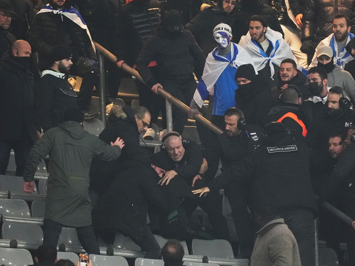 Bis zum Anpfiff war es in Paris noch ruhig geblieben. In der ersten Halbzeit kam es dann zu Zusammenstößen einiger Dutzender Menschen in der Nordkurve. Auch Fans mit israelischen Fahnen waren daran beteiligt, wie auf Videos zu sehen war. Die Sicherheitskräfte und Polizisten griffen schnell ein und trennten die beiden Gruppen. Der Vorfall dauerte gut zwei Minuten.