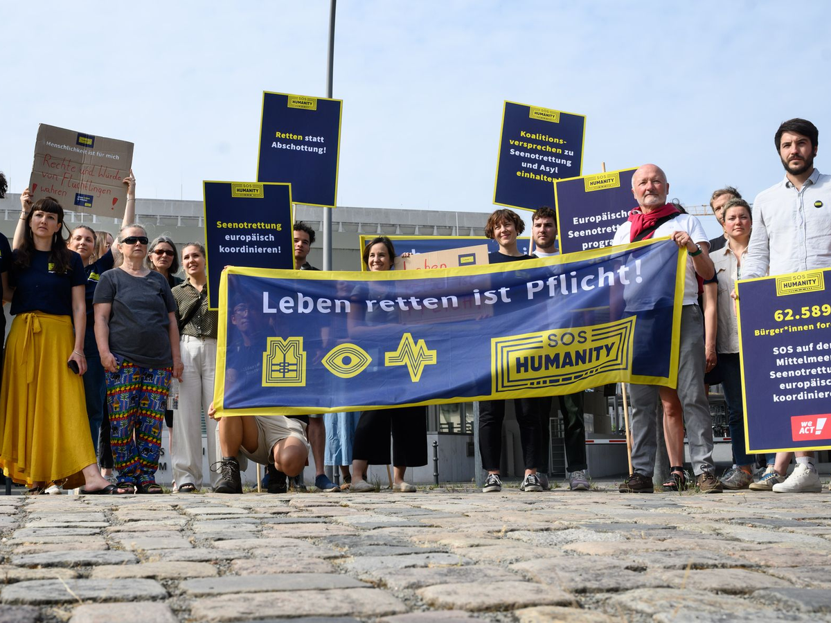 Die Vertreter der Organisation, die Bootsmigranten im Mittelmeer aus Seenot rettet, übergaben nach eigenen Angaben mehr als 62.000 Unterschriften für eine Petition, mit der die Bundesregierung aufgefordert wird, ein koordiniertes europäisches Rettungsprogramm anzustoßen.