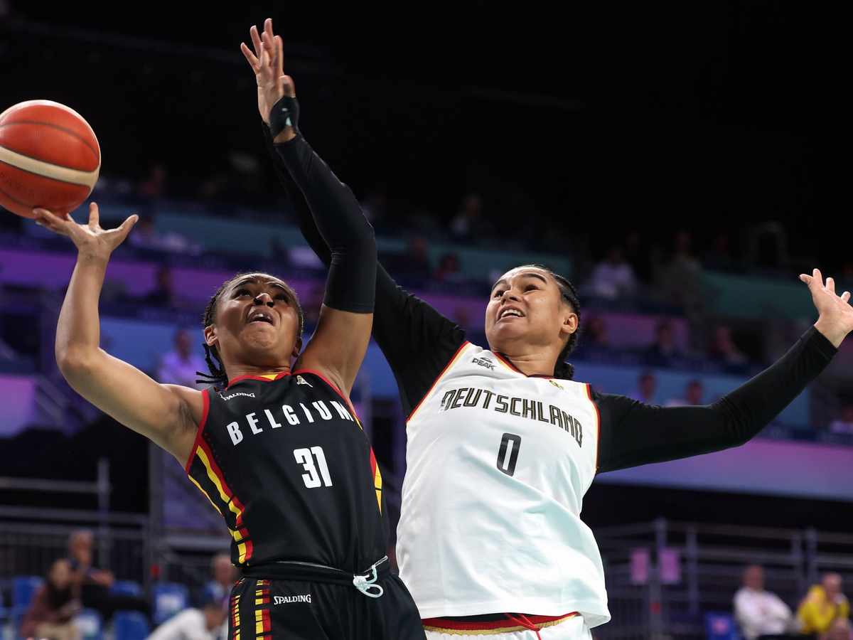 Das deutsche Team zeigte bei seiner Olympia-Premiere von Anfang an keine Nerven. Die Regie im ersten Viertel übernahm Leonie Fiebich. Die 24-Jährige vom WNBA-Club New York Liberty traf früh zwei wichtige Dreier und sorgte so für etwas Ruhe in der überwiegend mit belgischen Fans besetzten Arena.