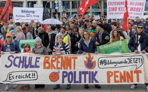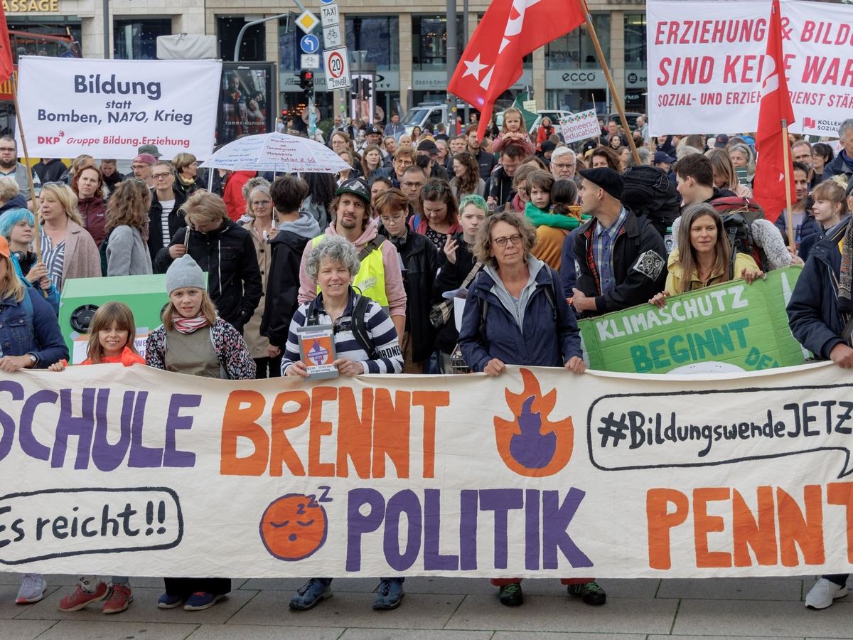 Die Teilnehmer wollten fĂŒr inklusive und zukunftsfĂ€hige Schulen und Kitas demonstrieren. «Deutschland steckt in einer der schwersten Bildungskrisen seit GrĂŒndung der Bundesrepublik», heiĂt es auf der Homepage des BĂŒndnisses. Bundesweit fehlten Hunderttausende KitaplĂ€tze. «Der Mangel an LehrkrĂ€ften und Erzieher*innen steigt immer weiter und trifft auf ein veraltetes und unterfinanziertes Bildungssystem, das sozial ungerecht ist.»
