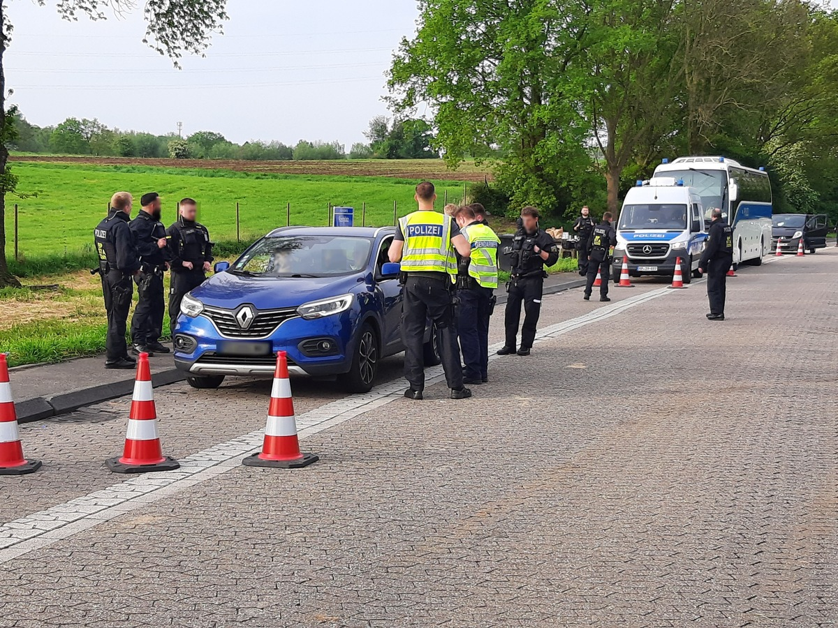 Die Anreisephase der Pariser Fans wurde mit Unterstützung der Mobilen Kontroll- und Überwachungseinheit der Direktion Sankt Augustin, der Deutsch-Französischen Einsatzeinheit aus Bad Bergzabern, sowie einer gemeinsamen Streife aus Bundespolizei und der niederländischen Königlichen Marechaussee überwacht. Ziel der heutigen Kontrollaktionen war es, vor allem gefährliche Gegenstände wie etwa Pyrotechnik, Bewaffnungen und Vermummungsmaterial sicherzustellen. Darüber hinaus wurden in Einzelfällen die rechtlichen Voraussetzungen für die Unterbindung der Einreise gewaltbereiter Fans geprüft. In der Vergangenheit war es bei ähnlichen Begegnungen zu Ausschreitungen gekommen. Die Kontrollmaßnahmen begangen um 06:00 Uhr unter anderem auf dem Rastplatz "Königsberg" an der Bundesautobahn 44 und endeten am späten Nachmittag.