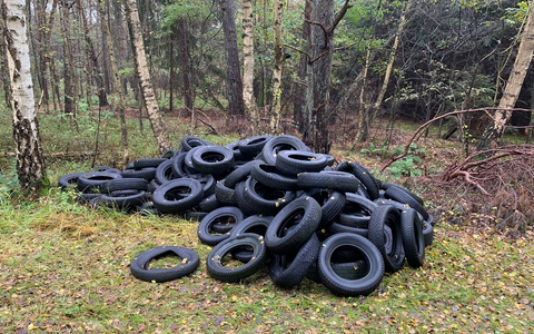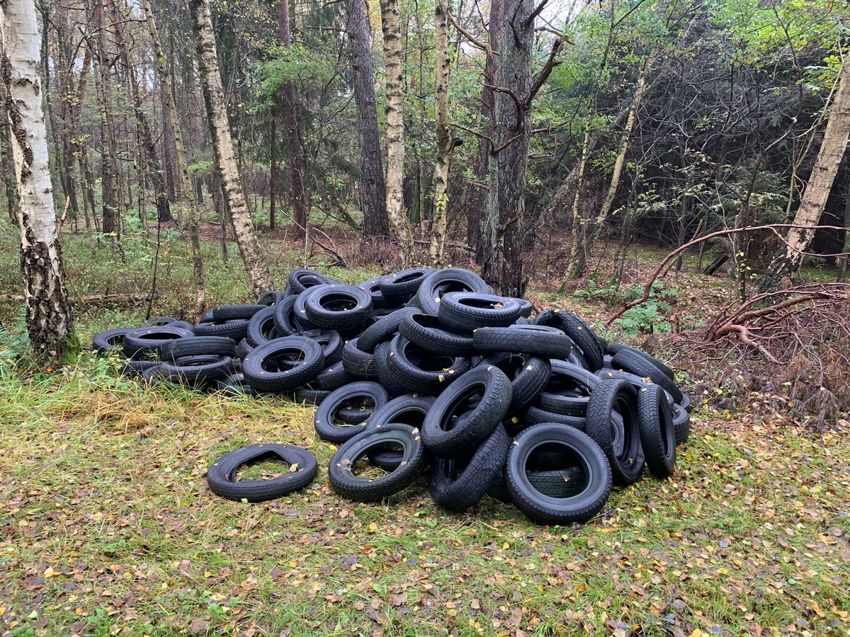 ++ Altreifen im Wald entsorgt - Polizei bittet um Hinweise ++