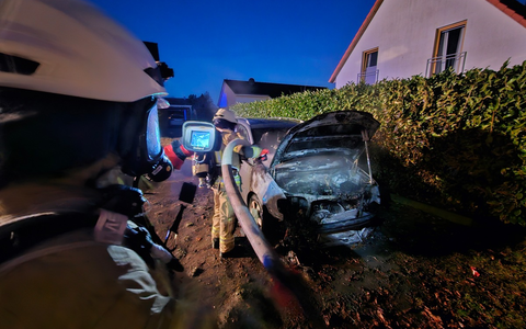 Beim Eintreffen der Einsatzkräfte stand der Pkw bereits in Vollbrand. Aufgrund der unmittelbaren Nähe zu einer Hecke und einem Wohnhaus bestand die akute Gefahr einer Brandausbreitung; das Feuer hatte bereits begonnen auf die Hecke überzugreifen. Durch das schnelle und gezielte Eingreifen der Feuerwehr konnte jedoch ein komplette Brandausbreitung der Flammen über die Hecke auf das angrenzende Haus erfolgreich verhindert werden.