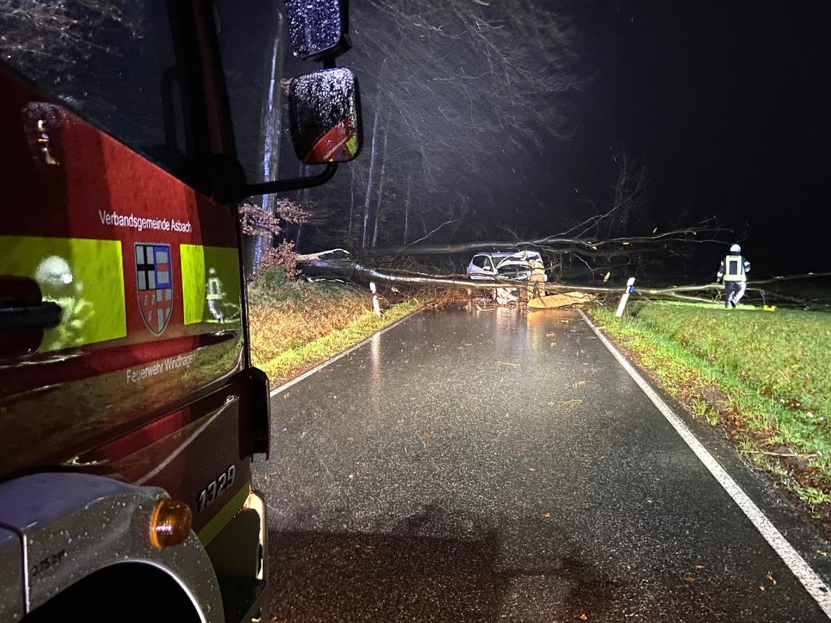 Ab 20 Uhr hĂ€uften sich die Einsatzmeldungen in der gesamten Verbandsgemeinde. Die Einheiten Krautscheid, Neustadt, Windhagen, Asbach, Fernthal und Altenhofen hatten unzĂ€hlige umgestĂŒrzte BĂ€ume zu beseitigen. Bei Schweifeld wurde zudem ein Verkehrsunfall gemeldet. Ein PKW ist am Ortsausgang in einen umgestĂŒrzten Baum gefahren. Der Fahrer konnte sich eigenstĂ€ndig aus dem Fahrzeug befreien und wurde vom Rettungsdienst in Augenschein genommen. Die Feuerwehr entfernte den Baum und rĂ€umte die StraĂe. Gegen 23 Uhr wurde auch die Einheit Strauscheid alarmiert und kontrolliere die WasserstĂ€nde an den CampingplĂ€tzen im AusrĂŒckebereich. Gegen 24 Uhr waren alle Einsatzstellen abgearbeitet und die Einheiten wieder eingerĂŒckt.