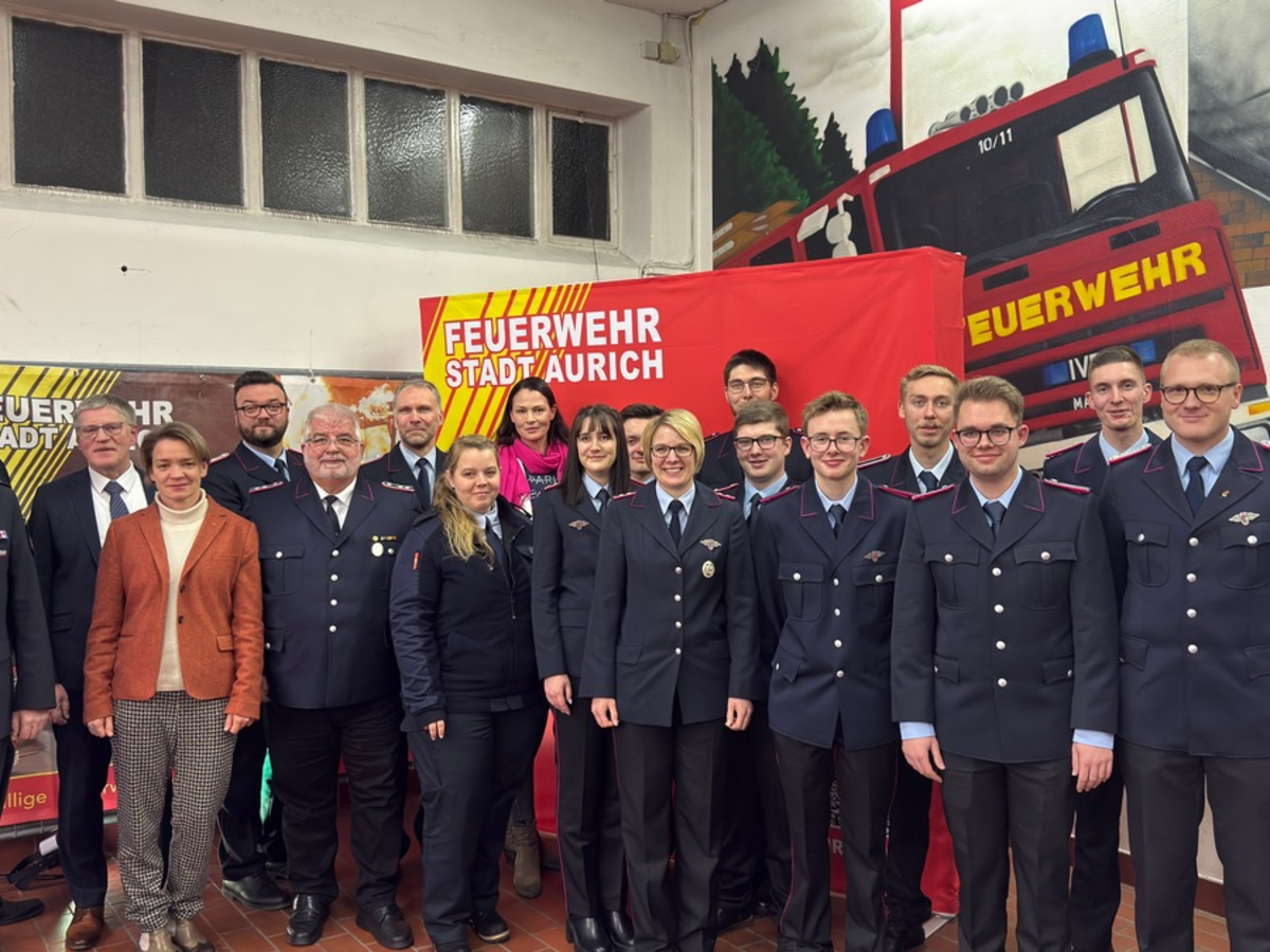 Im Rahmen der Ernennungen, Beförderungen und Ehrungen wurden zunächst Björn Kröger, Julian Meyer und Leon Ott zu Feuerwehrmännern ernannt. Stefan Arnold, Jan Oldziejewski, Paul Rinne und Leon Wagenschütz sind zum Oberfeuerwehrmann, Franziska Bruns, Hilke Harms und Nadine Menssen zur Ersten Hauptfeuerwehrfrau befördert worden. Die Ehrung für 25-jährige Mitgliedschaft in der Freiwilligen Feuerwehr konnte Dirk Freitag verliehen werden, als kleine Überraschung des Abends wurde Christian Balbach für sein schon viele Jahre andauerndes Engagement als Kreisausbilder sowie Beauftragter für den Atemschutz auf Stadt- und Kreisebene mit der Ehrennadel des Landesfeuerwehrverbandes Niedersachsen in Silber ausgezeichnet.