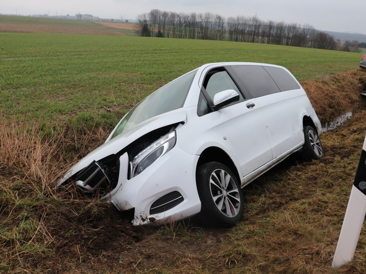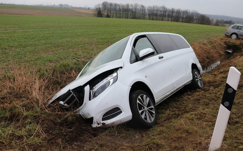 13.02.2024 - 16:39:03 | presseportal.deEin mit fünf Personen besetzter Mercedes Vito wurde durch den Aufprall in den seitlichen Straßengraben geschleudert. Die vier Männer und eine Frau in dem Mercedes erlitten jeweils leichte Verletzungen. Das Auto musste abgeschleppt werden, die Feuerwehr war im Einsatz, um auslaufende Betriebsstoffe aufzufangen. Der Sachschaden an dem Vito wird auf rund 10.000 Euro geschätzt. Der Fahrer des entgegenkommenden VW Golf blieb unverletzt, der entstandene Schaden liegt bei rund 2.000 Euro.