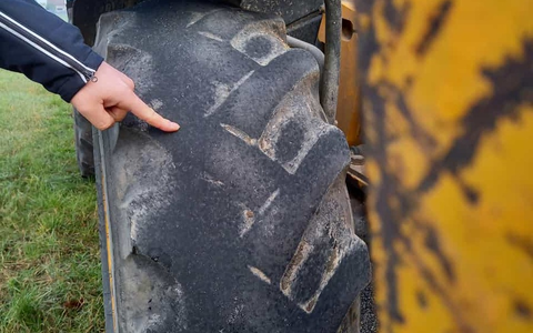 Kontrolle eines Radladers ohne ausreichendes Reifenprofil